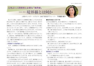 長瀬ランダウア社様から再びお声がけをいただきましてNLだよりに、3回シリーズで『心地よい人間関係に必要な「境界線」』についてコラムを書かせていただきました。